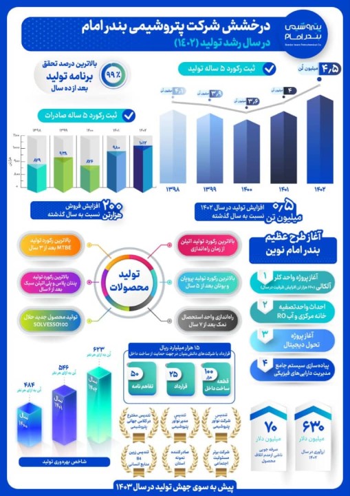 پتروشیمی بندر امام؛ رکورد تاریخی تولید و صادرات محصولات ۵ ساله را با ۴.۵ میلیون تن شکست