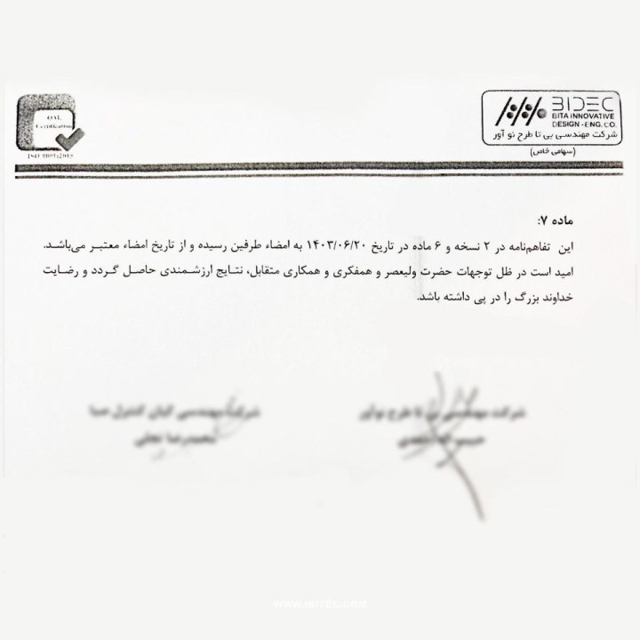 این قرارداد مهم توسط آقای دکتر احمدی مدیر عامل شرکت بی تاطرح نوآور و آقای تجلی، مدیرعامل شرکت کیان کنترل صبا، به امضا رسید و فرصتهای جدیدی را برای رشد و توسعه صنعت مهندسی در پروژههای داخلی و بینالمللی فراهم خواهد آورد.