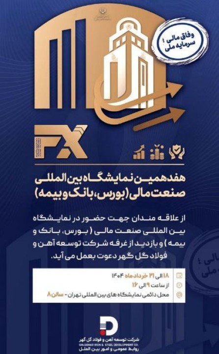 از علاقهمندان جهت حضور در هفدهمین نمایشگاه «بین المللی صنعت مالی» و بازدید از غرفه شرکت توسعه آهن و فولاد گلگهر دعوت به عمل می آید.