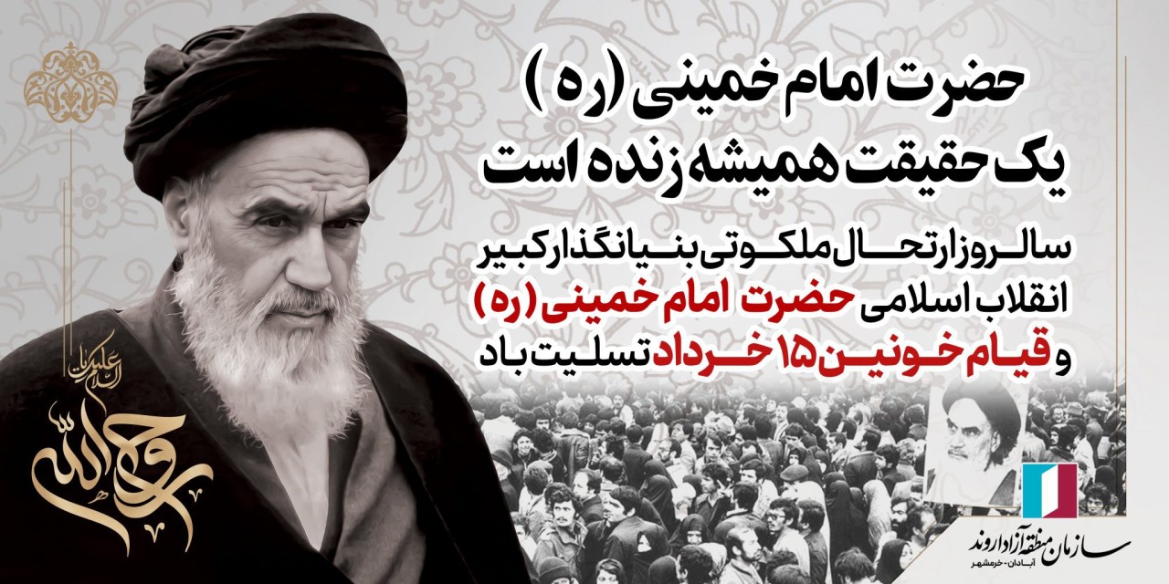اینجانب سالگرد ارتحال بنیانگذار کبیر جمهوری اسلامی ایران را به تمامی آزادی خواهان و مسلمانان جهان، ملت شریف ایران و به ویژه اروندنشینان غیور، انقلابی و ولایتمدار تسلیت عرض نموده و ضمن گرامیداشت یاد و خاطره شهدای قیام خونین 15 خرداد و تجدید بیعت با آرمانهای امام (ره)، اعتلای نظام مقدس و سرافرازی ایران اسلامی را تحت فرامین و منویات رهبر فرزانه انقلاب از درگاه خداوند متعال مسئلت دارم.