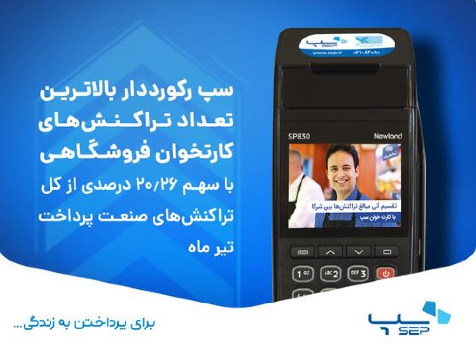 سپ با سهم 20.26 درصدی از کل تراکنشهای صنعت پرداخت تیر ماه، همچنان در رتبه نخست کشور قرار دارد.