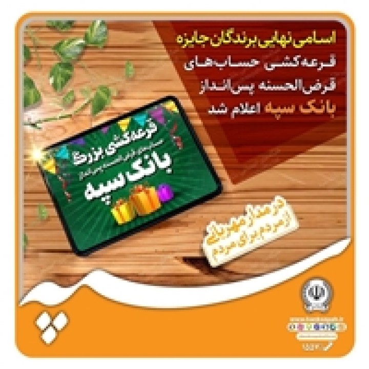 اسامی نهایی برندگان خوششانس 5555 جایزه نقدی یک میلیارد ریالی پیش از این از طریق وب سایت بانک سپه اطلاع رسانی شده بود و در این مرحله اسامی برندگان 715 هزار و 364 جایزه نقدی 3500000 ریالی و 11 هزار و 111 فقره حق تقدم وام قرضالحسنه 500 میلیون ریالی مشخص شدند.
