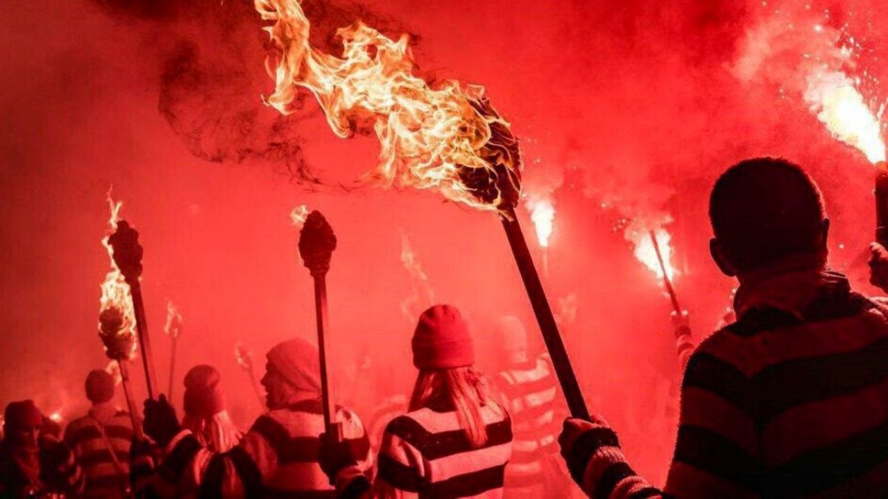 شرکت کنندگان به دو گروه تقسیم شدند و مشعلهای سوزان را به سمت حریفان خود پرتاب کردند. هر نفر مجاز به انجام پنج پرتاب است