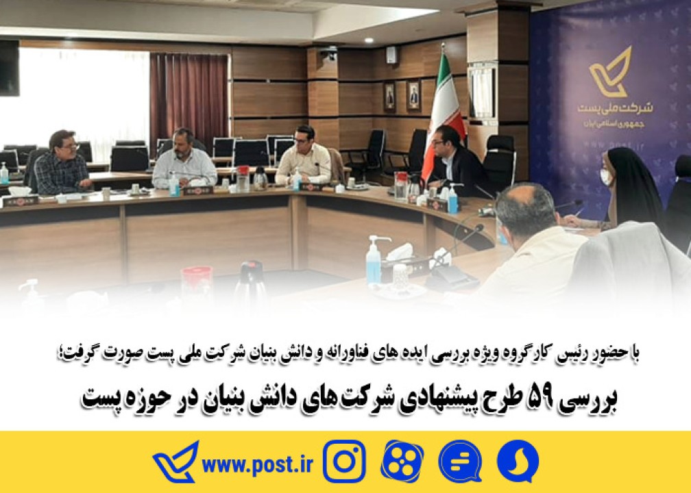 شایان ذکر است کارگروه ویژه ی بررسی ایده های فناورانه و دانش بنیان شرکت ملی پست، در سال تولید دانش بنیان و اشتغال آفرین، با هدف بررسی و بکارگیری ایده های فناورانه واصله از اعضای مرکز نوآوری پست، تجارت الکترونیک و لجستیک پیشرفته و در راستای تحقق تحول دیجیتال و هوشمند سازی شرکت ملی پست با حکم محمود لیائی، معاون وزیر، رئیس هیئت مدیره و مدیرعامل شرکت ملی پست در فروردین ماه سال جاری، به ریاست محمدرضا قادری، عضو هیئت مدیره این شرکت و جمعی از معاونین ادارات کل ستادی مرتبط تشکیل و جلسات آن به صورت مداوم و هفتگی برگزار می شود.