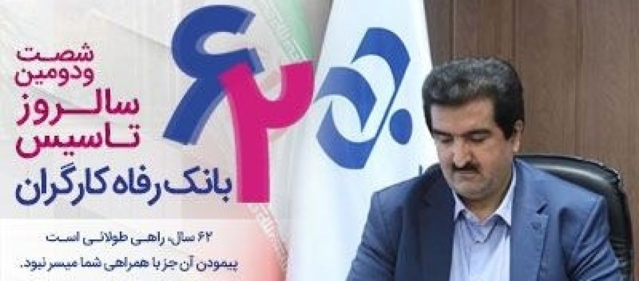27 مرداد ماه شصت و دومین سالروز تأسیس بانک رفاه کارگران را به تمامی سهامداران، مشتریان، کارکنان و ذی نفعان تبریک عرض می نمایم.