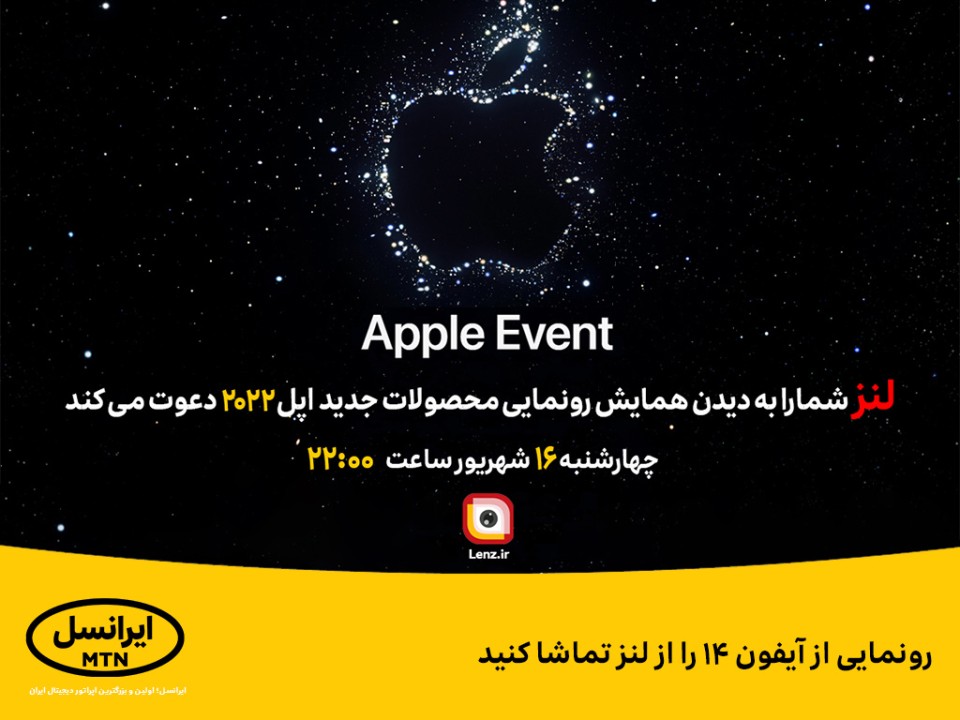 لنز ایرانسل، رویداد امشب شرکت اپل برای معرفی خانواده آیفون ۱۴ را به صورت زنده پخش می‌کند.
