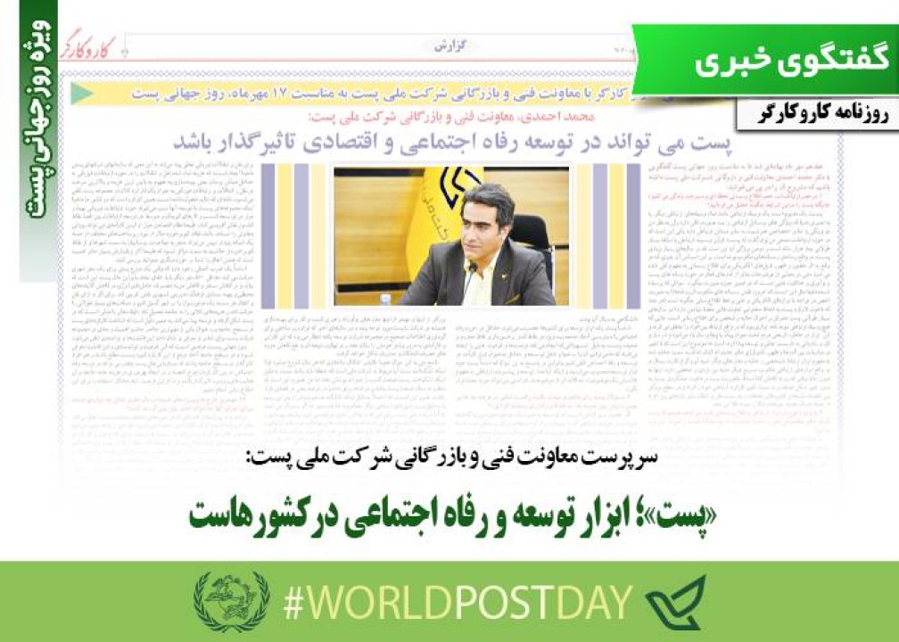 به گزارش دفتر ارتباطات شرکت ملی پست؛ به مناسبت روز جهانی پست «روزنامه کاروکارگر» گفتگویی با محمد احمدی سرپرست معاونت فنی و بازرگانی این شرکت پیرامون نقش پست در توسعه و رفاه اجتماعی کشور انجام داده که مشروح آن را در ادامه میخوانید: