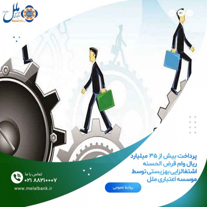 موسسه اعتباری ملل در راستای مسئولیت های اجتماعی و حمایت از افراد آسیب پذیر بیش از ۳۵ میلیارد ریال وام قرض الحسنه اشتغالزایی بهزیستی پرداخت نمود.