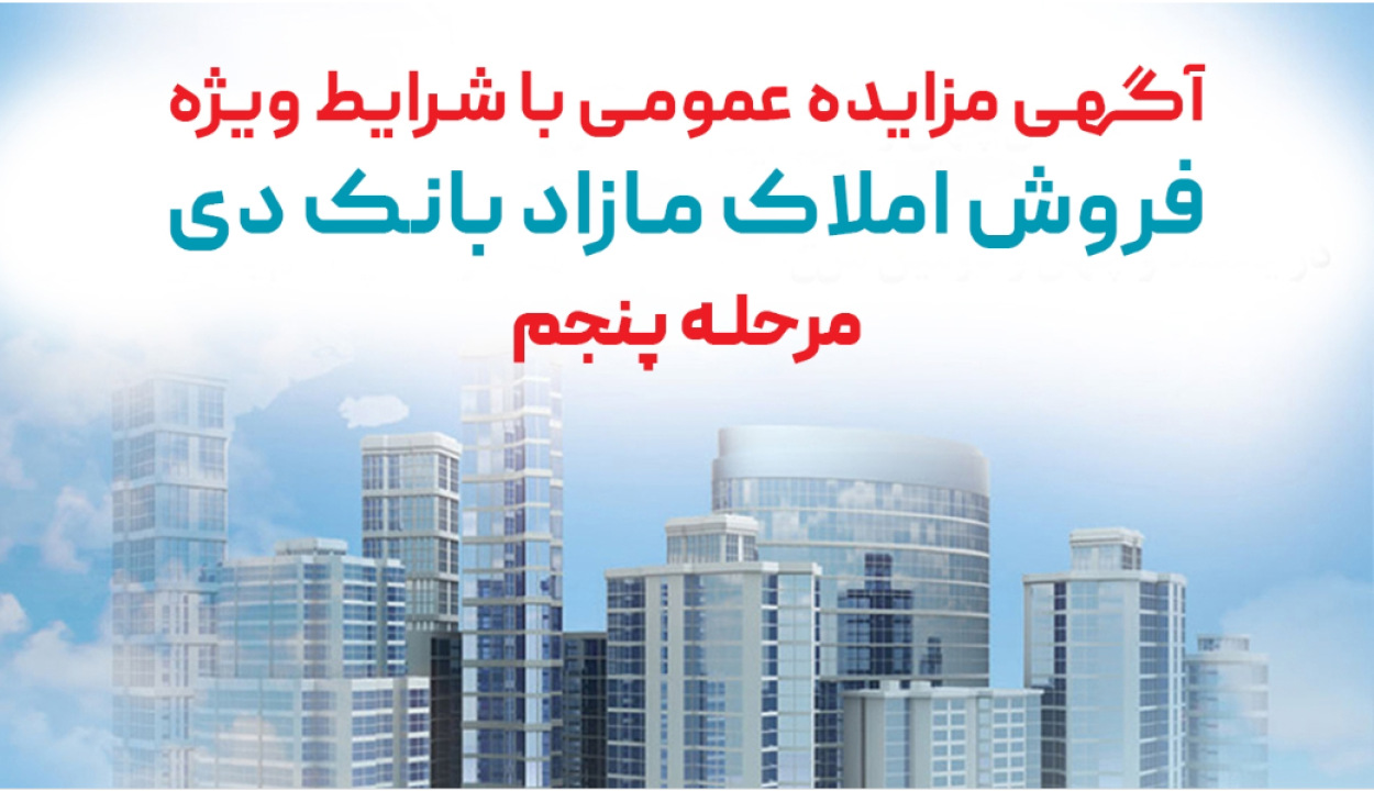آگهی مرحله پنجم مزایده املاک مازاد بانک دی در سال 1401 با شرایط ویژه