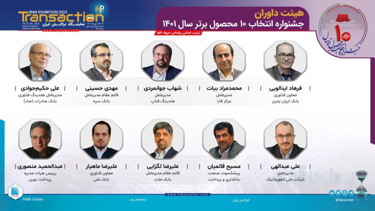 همچنین در مورخ 24 آبان 1401، شهرام کافی، مدیر اجرایی جشنواره و مینا زنگنه مدیر توسعه کسب و کار مرکز فابا در گفتگویی با فابانیوز، نحوه حضور و مشارکت در این بخش را اطلاع رسانی کردند. برای کسب اطلاعات بیشتر در این خصوص به خبر با عنوان فرآیند انتخاب 10 محصول برتر سال در نمایشگاه تراکنش ایران مراجعه فرمایید.