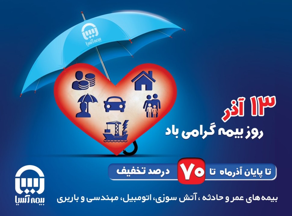 روابط عمومی بیمه آسیا در اطلاعیه ای ضمن گرامیداشت روز بیمه (13 آذر)، اعلام کرد شرکت بیمه آسیا در راستای تحقق توسعه بیمه در کشور، تخفیفات و تسهیلات ویژه بیمه ای را در رشته های اموال و زندگی تا پایان آذر ماه سال جاری ارائه می کند.