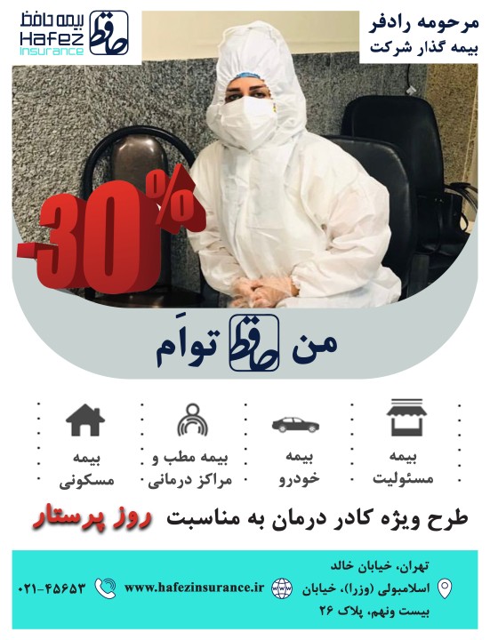 کلیه کادر درمان گرامی می توانند جهت کسب اطلاعات بیشتر و دسترسی به نشانی شعبه ها و نمایندگی های این شرکت در سراسر کشور به پایگاه اطلاع رسانی بیمه حافظ https://www.hafezinsurance.ir مراجعه و یا با مرکز ارتباط با مشتریان بیمه حافظ 45653 (021) تماس حاصل نمایند