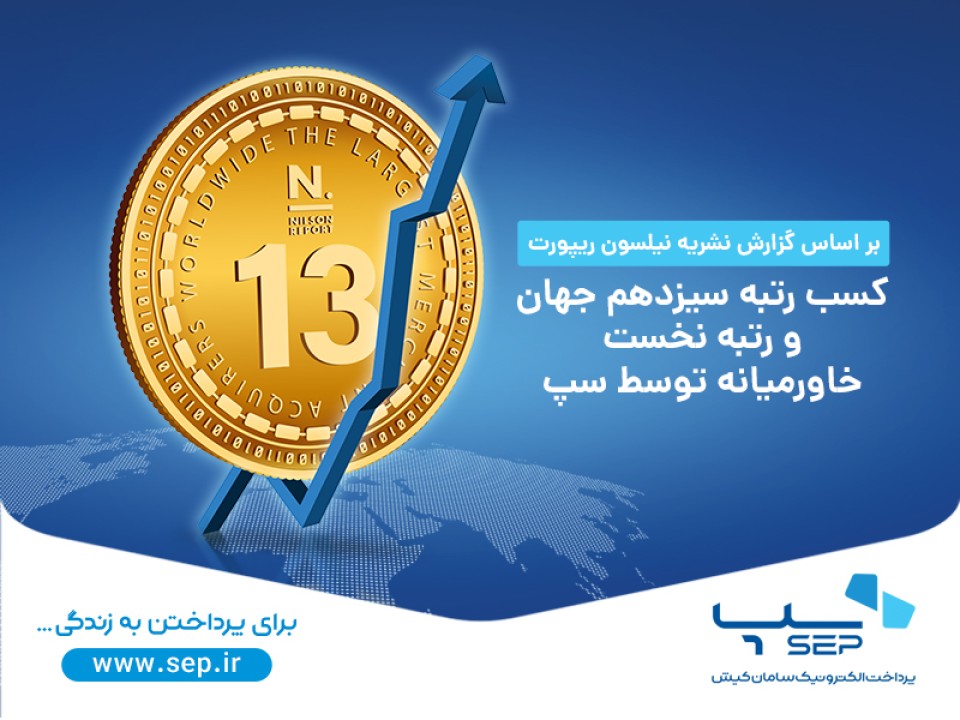 به گزارش روابط عمومی سپ، براساس نشریه نیلسون ریپورت، این شرکت با 7،7 میلیارد تراکنش و دو پله صعود نسبت به سال گذشته، موفق به کسب رتبه سیزدهم جهان و اول ایران در بین شرکتهای صنعت پرداخت در سال 2021 شد.