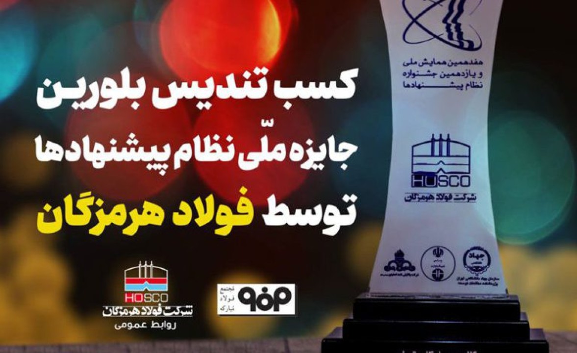 در هفدهمین همایش ملی و یازدهمین جشنواره نظام پیشنهادها، شرکت فولاد هرمزگان با ارائه طرح «فرآوری گرم سرباره کوره‌های قوس الکتریکی» توانست تندیس بلورین را کسب کند و واحد فولادسازی و ریخته‌گری مداوم این شرکت نیز رتبه برتر واحد سازمانی را به دست آورد.