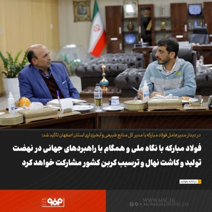 محمد یاسر طیب نیا مدیر عامل فولاد مبارکه در جلسه ای با حضور ابوطالب امینی مدیر کل منابع طبیعی و آبخیزداری استان اصفهان گفت: علی رغم این که در حال حاضر در فولاد مبارکه حدود ۱۴۵۰ هکتار و بیش از استانداردهای لازم فضای سبز وجود دارد، با این حال این شرکت آماده است در راستای مسئولیت های اجتماعی خود و با نگاه ملی در کاشت نهال و توسعه فضای سبز با اداره کل منابع طبیعی استان همکاری و مشارکت کند.
