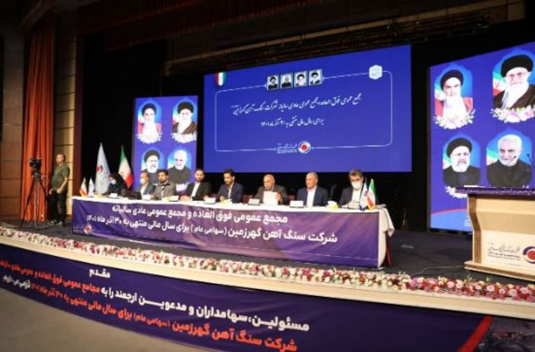 مجمععمومی عادی و فوقالعاده سالیانه شرکت سنگآهن گهرزمین برای سال مالی منتهی به 30 آذر 1401 صبح امروز با حضور بیش از 94 درصد سهامداران در هتل المپیک تهران برگزار شد.