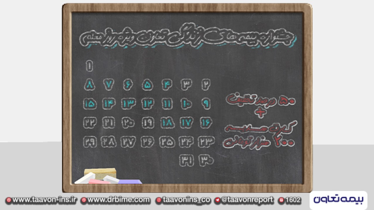 به گزارش روابط عمومی بیمه تعاون، به مناسبت گرامیداشت مقام معلم، جشنواره فروش بیمه های زندگی از تاریخ 4 تا 18 اردیبهشت راه اندازی شده است.