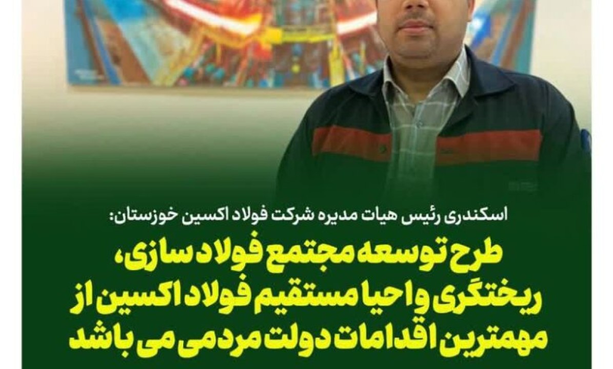 طرح توسعه مجتمع فولاد سازی، ریختگری و احیا مستقیم فولاد اکسین از مهمترین اقدامات دولت مردمی می باشد