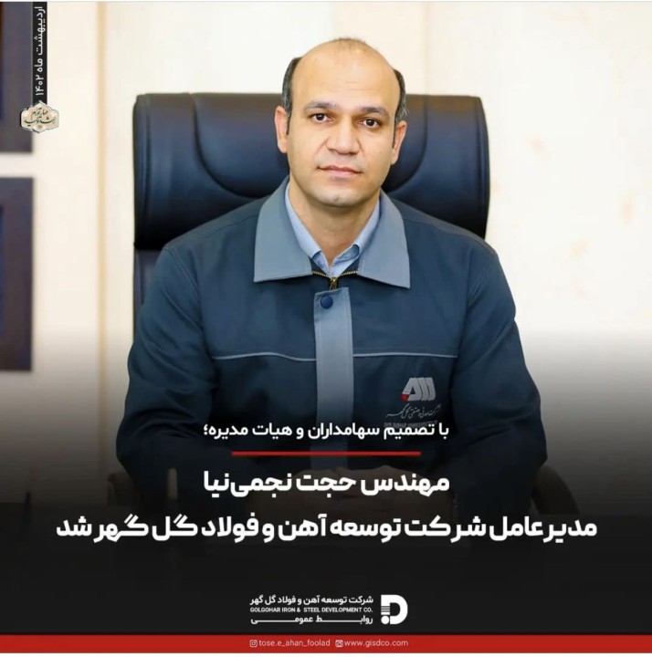 با تصمیم سهامداران و هیات مدیره مهندس حجت نجمی نیا مدیر عامل شرکت توسعه آهن و فولاد گل گهر شد