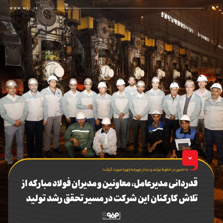 محمدیاسر طیبنیا، مدیرعامل فولاد مبارکه در بازدید از خطوط تولید این شرکت: ثبت رکوردهای روزانه و ماهانه تولید فولاد مبارکه از ابتدای سال جاری نتیجه همافزایی و تلاش مضاعف کارکنان غیور این شرکت، کار گروهی و هماهنگ، پشتیبانی دقیق، برنامهریزی و مدیریت در استفاده حداکثری از ظرفیتهای موجود بوده که بسیار ارزشمند و قابل تقدیر است؛ با توجه به انتخاب شعار "مهار تورم و رشد تولید" توسط مقام معظم رهبری و تاکید ایشان بر تقویت تولید در کشور، فولاد مبارکه عزم خود را برای رشد تولید جزم کرده و در مسیر تحقق آن برنامهریزیهای لازم را انجام داده است.