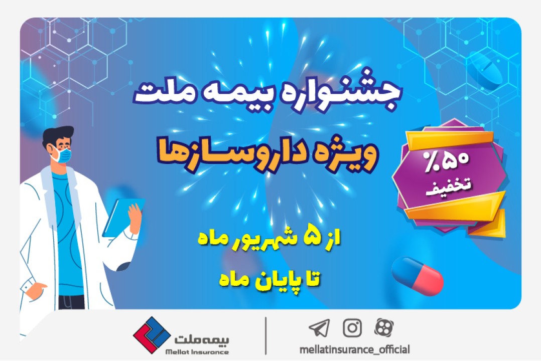 بیمه ملت به مناسبت فرا رسیدن ۵ شهریورماه روز داروساز، بیمههای مسئولیت را با تخفیف ۵۰ درصدی به داروسازان ارائه میکند.