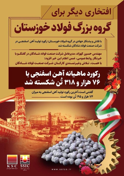 گفتنی است، اخرین رکورد تولید آهن اسفنجی به میزان 74 هزار و 195 تُن بوده است.