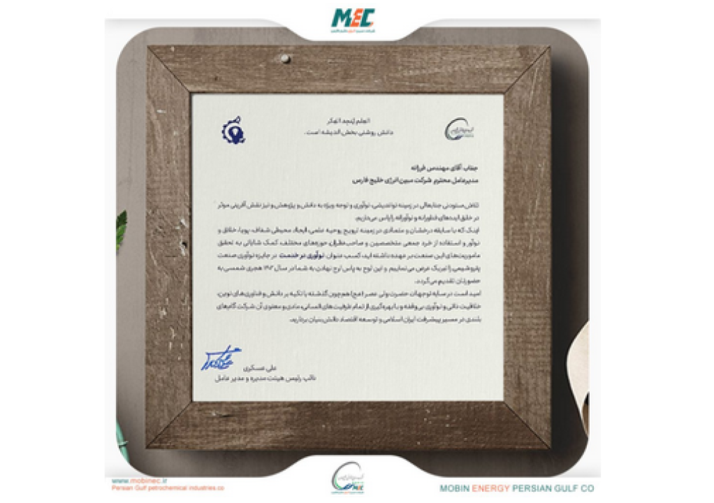 در شرایطی که دانش و فناوری به عنوان محور اصلی پیشرفت کشورها شناخته شده، شرکت مبین انرژی خلیج فارس با کسب دو افتخار درخشان در دو همایش معتبر، نقش پیشتاز خود را در عرصه تحقیق و توسعه صنعت پتروشیمی ایران نشان داد.در رویداد اول که صبح دوشنبه در دانشگاه خلیج فارس و در حضور معاون استاندار بوشهر برگزار شد، از شرکت مبین انرژی خلیج فارس، به پاس فعالیت‌های نوآورانه و بنیادی در زمینه پژوهش، تقدیر و به عنوان «شرکت پژوهشی برتر استان بوشهر» معرفی شد. همچنین در دومین سال از همایش پتروفن که هرساله به عنوان محلی برای تبادل دانش و تجربه در صنعت، فعالیت می‌کند، شرکت مبین انرژی خلیج فارس با ارائه راهکارها و محصولات نوآورانه خود، موفق به کسب لوح «نوآوری در خدمت» شد. مدیرعامل شرکت مبین انرژی خلیج فارس در این زمینه اظهار داشت: این دستاوردها نتیجه تلاش‌های مستمر و سنجیده تیم‌های متخصص و متعهد شرکت مبین انرژی خلیج فارس است که با اتکاء به دانش بومی و بکارگیری استراتژی‌های هوشمندانه، در راستای تحقق اهداف بزرگتر صنعت پتروشیمی ایران حرکت می‌کنند. مهندس فرزانه خاطر نشان کرد: این موفقیت‌ها تنها بخشی از مسیر طولانی است که این شرکت برای نیل به تعالی پیموده است و به نظر می‌رسد که آینده‌ای روشن و همراه با دستاوردهای بیشتر در انتظار مبین انرژی خلیج فارس خواهد بود. در شرایطی که دانش و فناوری به عنوان محور اصلی پیشرفت کشورها شناخته شده، شرکت مبین انرژی خلیج فارس با کسب دو افتخار درخشان در دو همایش معتبر، نقش پیشتاز خود را در عرصه تحقیق و توسعه صنعت پتروشیمی ایران نشان داد.