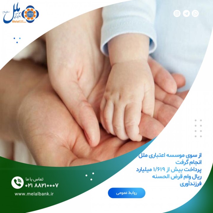 موسسه اعتباری ملل در راستای افزایش و جوانی جمعیت نسبت به پرداخت بیش از ۱/۶۱۹ میلیارد ریال وام قرض الحسنه فرزندآوری اقدام نمود.