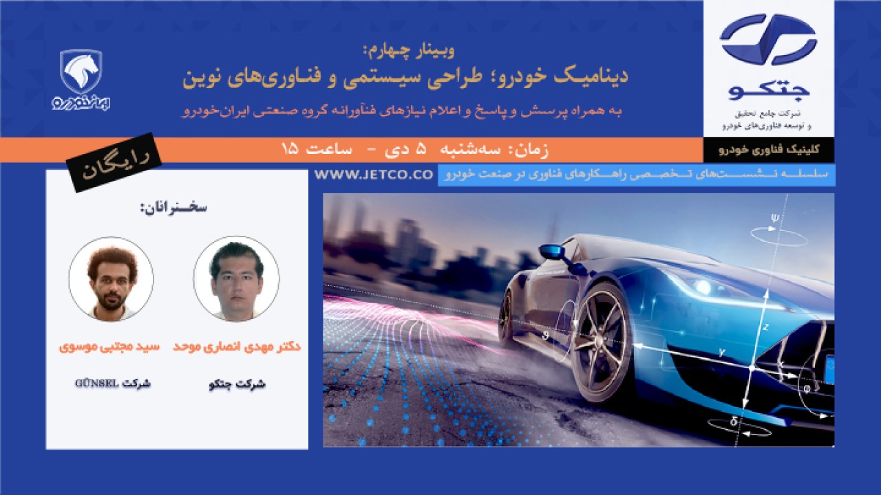این وبینار سهشنبه پنجم دی ماه با موضوع «دینامیک خودرو؛ طراحی سیستمی و فناوریهای نوین» به صورت آنلاین برگزار میشود. در این وبینار چگونگی عبور هر شاخه طراحی اعم از کارکرد، کنترل، سازه، ایمنی، آلایندگی، مکانیزم، آیرودینامیک، دوام و کیفیت از مسیر دینامیک خودرو تشریح خواهد شد. دینامیک خودرو سلطه خود را بر تمامی مراحل فرآیند طراحی، با احاطه بر عملکرد مگاماژولهای خودرو دیکته میکند و با نگاه به اندرکنش میان سامانههای اصلی خودرو و الزامات طراحی، اطمینان حاصل میکند که تمامی اهداف برای نیل به یک محصول کارا، آسوده و بهینه برآورده شده است.