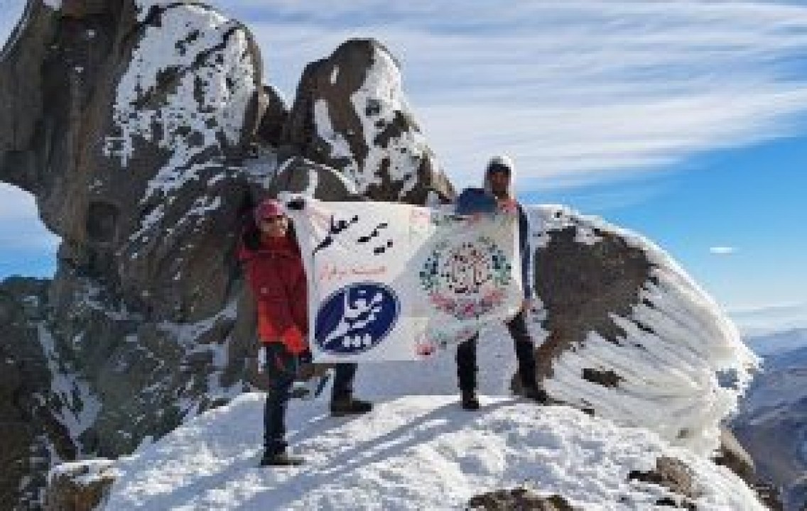 اهتزاز پرچم بیمه معلم بر فراز قله الوند