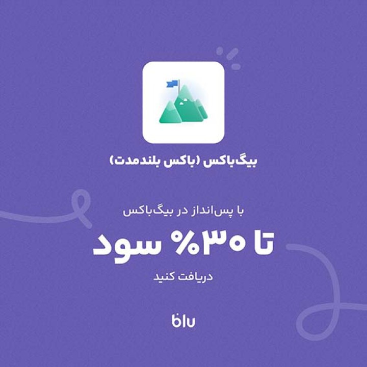 شما میتوانید با سرویس باکس سرمایهگذاری در اپلیکیشن بلو به صورت 12 ماهه سرمایهگذاری کنید و از 30% سود سالانه بهرهمند شوید. این سرویس «بیگباکس» نام دارد و در واقع یک صندوق سرمایهگذاری بلندمدت است.