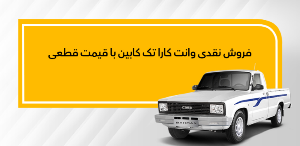 بهمن موتور، وانت کارا تک کابین تیپ ۴ را نقدی میفروشد. این طرح فروش با قیمت قطعی و ظرفیت محدود است که از طریق عاملیتها انجام میشود. این برنامه فروش از ده صبح سهشنبه مورخ ۱۷ بهمن تا ساعت ۲۴:۰۰ یا اتمام ظرفیت ادامه دارد و مشتریان میتوانند برای خرید از محصول از طریق آدرس اینترنتی bahman.iranecar.com اقدام کنند.