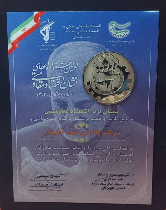 شرکت پالایش نفت آفتاب به مقام برتر جشنواره اعطای نشان اقتصاد مقاومتی استان هرمزگان نائل شد.