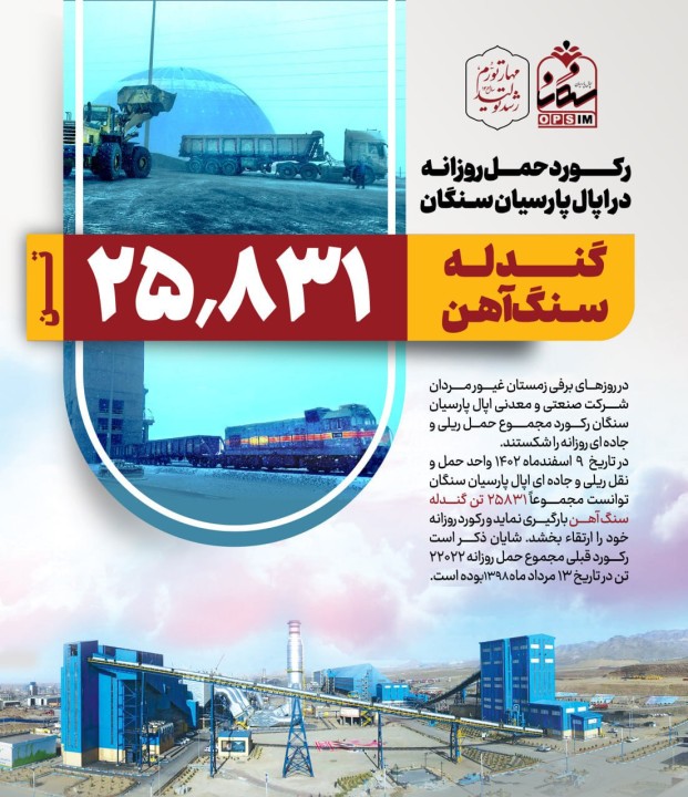 کارکنان شرکت صنعتی و معدنی اپال پارسیان سنگان رکورد مجموع حمل ریلی و جاده ای روزانه را شکستند.