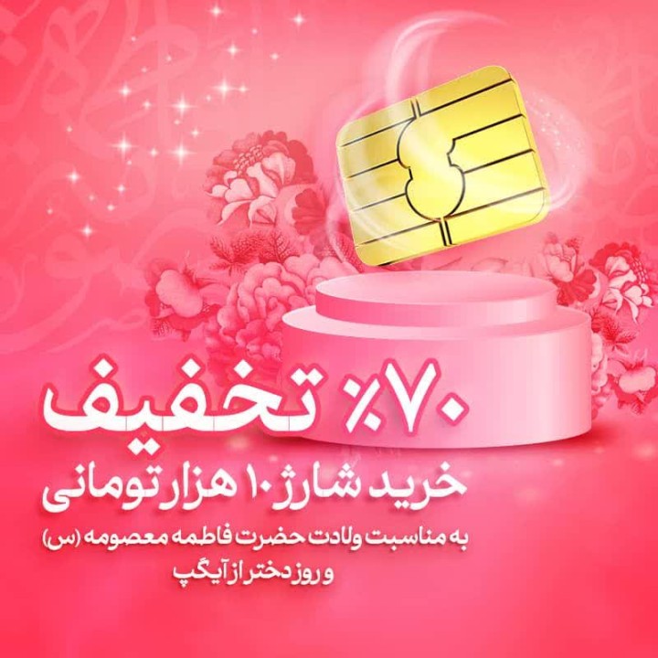 روز جمعه 21 اردیبهشت ماه مصادف با ولادت حضرت فاطمه معصومه (س) که در تقویم ملی کشورمان با عنوان روز دختر نامگذاری شده است، بانوان آیگپی میتوانند شارژ تلفن همراه خود را با تخفیف ویژه خریداری کنند.