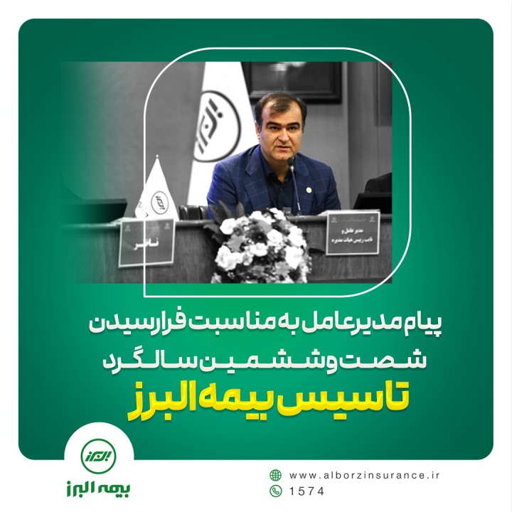 اینک خرسندیم که با تعامل و همگرایی روز افزون، نظاره گر فرارسیدن شصت و ششمین سالگرد تاسیس بیمه البرز هستیم و بی شک مسیر ماندگاری و پیشرفت البرز و رضایت مندی ذی نفعان آن با اتکاء بر سرمایه انسانی و شبکه فروش فهیم، دلسوز و متخصص برای همیشه هموار خواهد ماند.