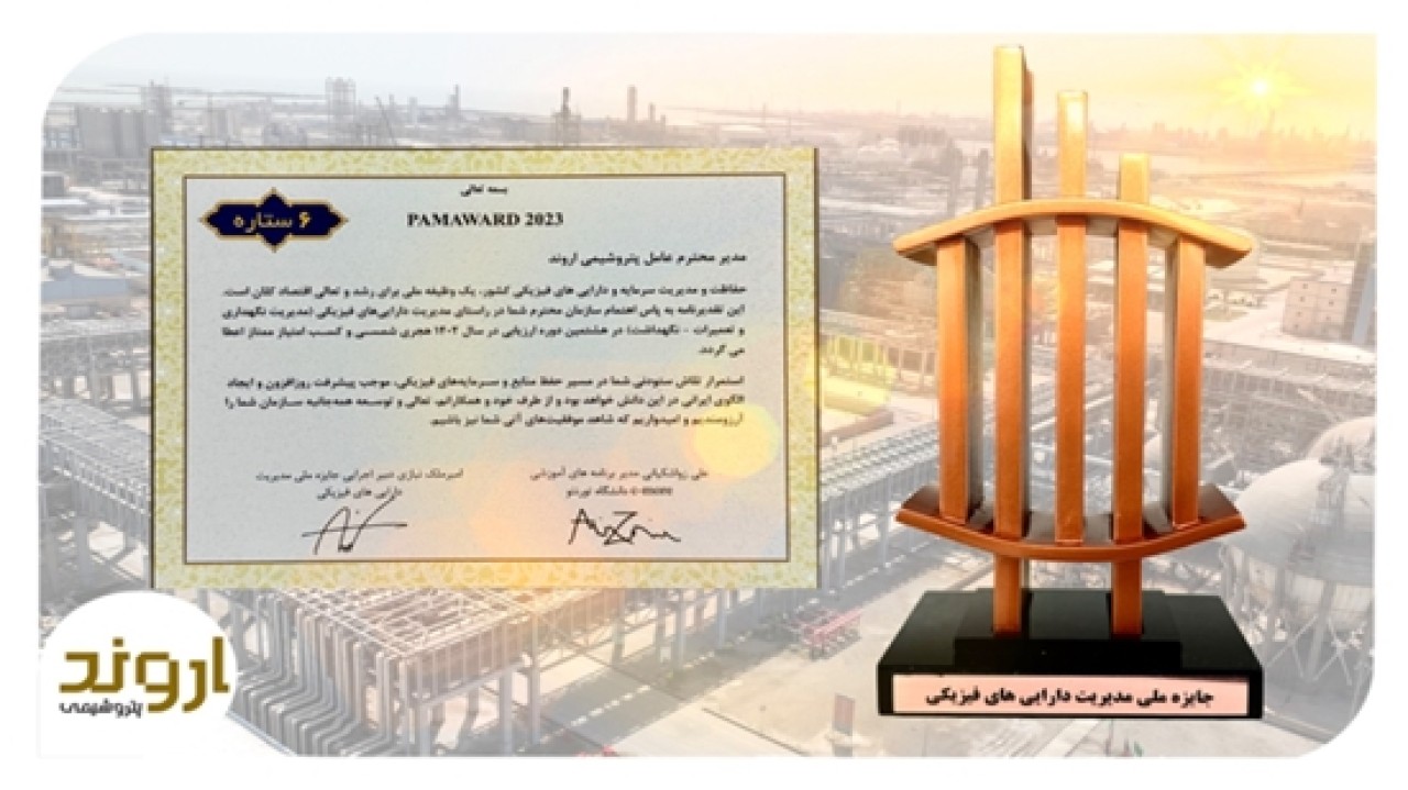 پتروشیمی اروند در هشتمین دوره جایزه ملی مدیریت داراییهای فیزیکی کشور، موفق به کسب تندیس برنزین شش ستاره شد.