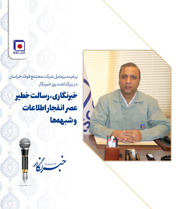 اینجانب فرصت را مغتنم شمرده و ضمن آرزوی تندرستی برای همه اصحاب رسانه، «روز خبرنگار» را به عموم خبرنگاران، به ویژه *روزنامهنگاران حوزه تولید و اقتصاد و نیز خبرنگاران پُرتلاش شهرستانهای نیشابور، فیروزه، زبرخان و میانجلگه* که در چالشهای مختلف، یار و بازویی موثر و همیشه همراه برای اصحاب صنعت و حامی جهادگران عرصه تولید کشور هستند، صمیمانه تهنیت عرض نموده و امیدوارم با عطف توجه بیش از پیش رسانهها به شعار سال و تولید محتوا همچون همیشه و همه جا، نقش خود را در امر *«جهشِ تولید با مشارکتِ مردم»* ایفا نموده و شاهد پویشهای پویا و موثر رسانهها برای کمک به خلق افتخارات تولیدی و اقتصادیِ میهن عزیز اسلامیمان باشیم.