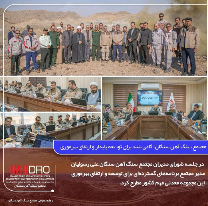 جلسه شورای مدیران مجتمع با حضور علی رسولیان مدیر مجتمع سنگ آهن سنگان، محمدرضا گودرزی مدیر منابع انسانی، آموزش و پشتیبانی سازمان ایمیدرو، معاونین و مدیران مجتمع در محل سالن جلسات مجتمع برگزار شد .