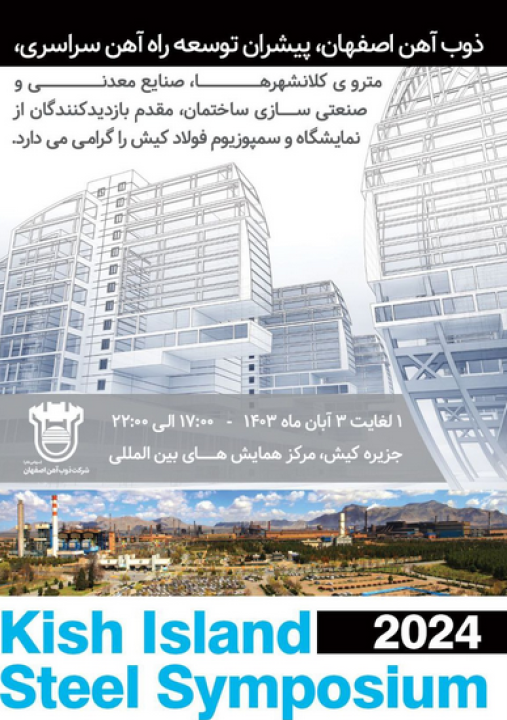ذوب‌آهن اصفهان، پیشران توسعه راه‌آهن سراسری، متروی کلان‌شهرها، صنایع معدنی و صنعتی‌سازی ساختمان مقدم بازدیدکنندگان از نمایشگاه و سمپوزیوم فولاد کیش را گرامی می‌دارد ۱ تا ۳ آبان‌ماه ۱۴۰۳ جزیره کیش، مرکز همایش‌های بین‌المللی