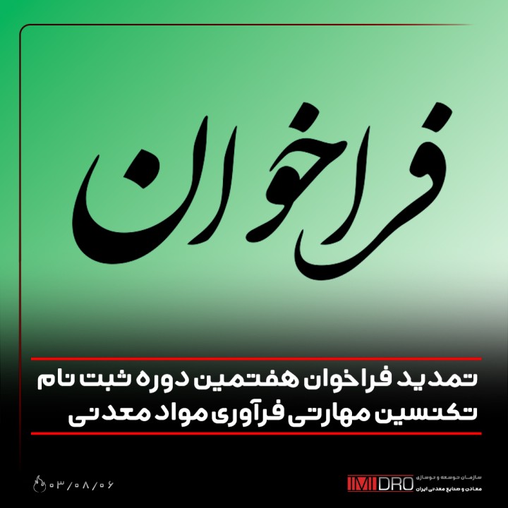 ایمیدرو فراخوان هفتمین دوره ثبت نام تکنسین مهارتی فرآوری مواد معدنی را تمدید کرد.