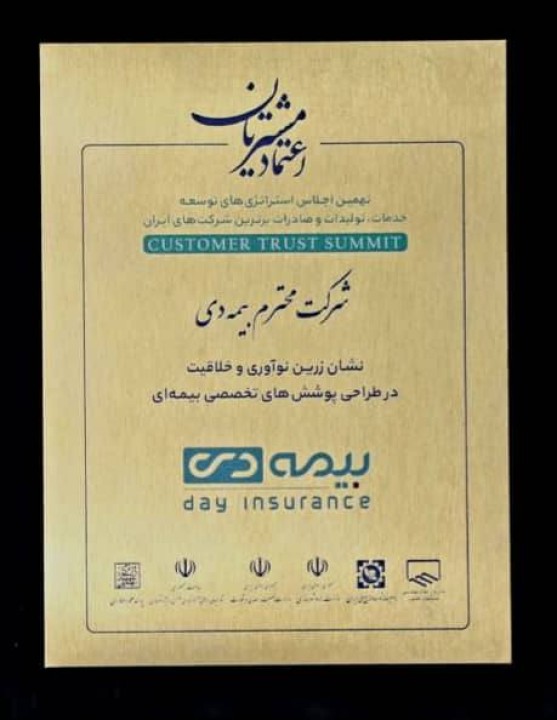 در این همایش که با حضور میهمانانی چون نمایندگان مجلس شورای اسلامی، رییس کمیسیون اقتصادی مجلس و نیز با حضور بیش از صد شرکت مطرح در حوزههای بانک، بیمه، صنایع غذایی و پتروشیمی برگزار شد، شرکت بیمه دی توانست نشان زرین نوآوری و خلاقیت در طراحی پوششهای بیمه را به خود اختصاص دهد.