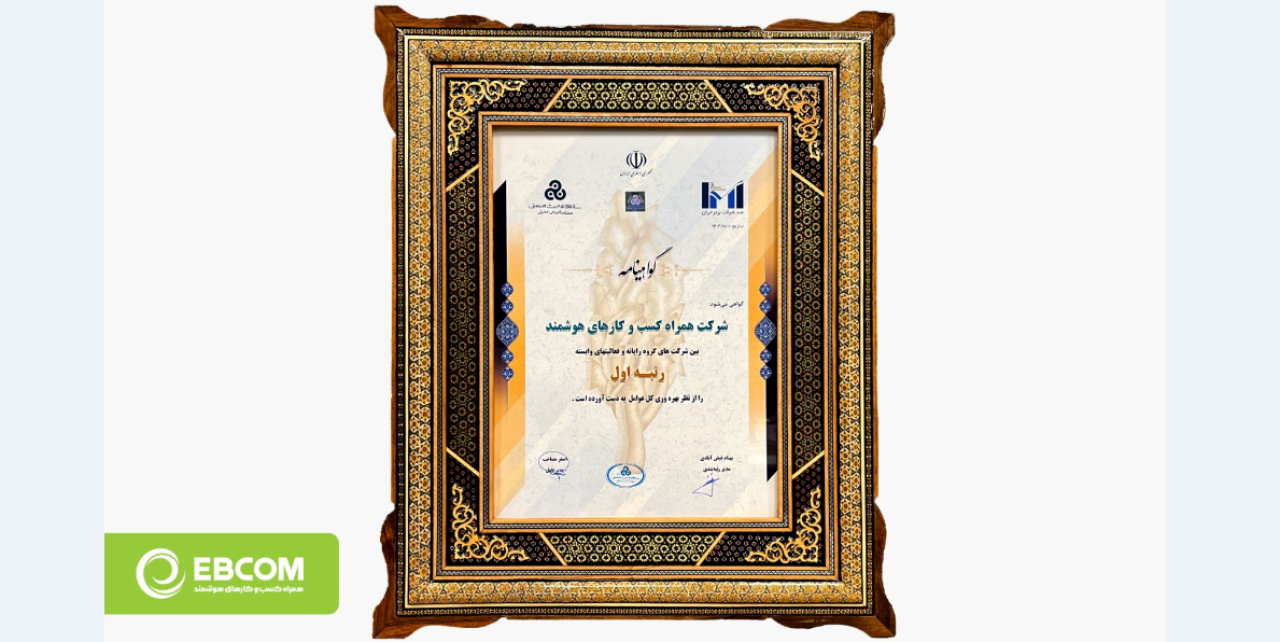 به گزارش روابط عمومی شرکت همراه کسبوکارهای هوشمند؛ در این همایش که با حضور معاون اول رئیس جمهور، وزیر صنعت، معدن و تجارت، معاونان وزیر و برخی مقامات کشور و مدیران صنایع و شرکتهای بزرگ کشور در محل سالن همایشهای صداوسیمای جمهوری اسلامی ایران برگزار شد، گواهینامه رتبه اول نظر بهرهوری کل عوامل در گروه رایانه و فعالیتهای وابسته به همراه کسبوکارهای هوشمند اهدا شد.