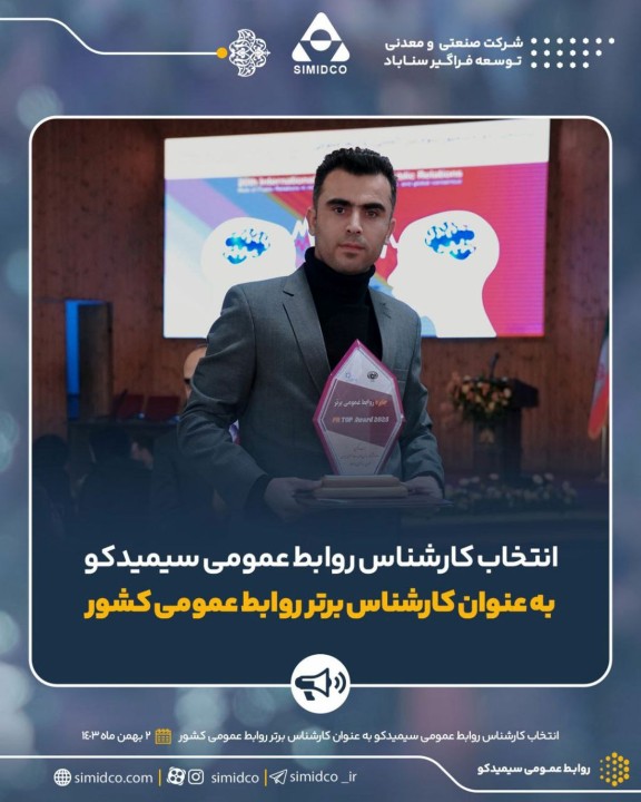 کارشناس روابط عمومی سیمیدکو در بیستمین دوره سمپوزیوم بین المللی روابط عمومی با کسب بالاترین امتیاز، عنوان کارشناس برتر روابط عمومی ایران را دریافت کرد.