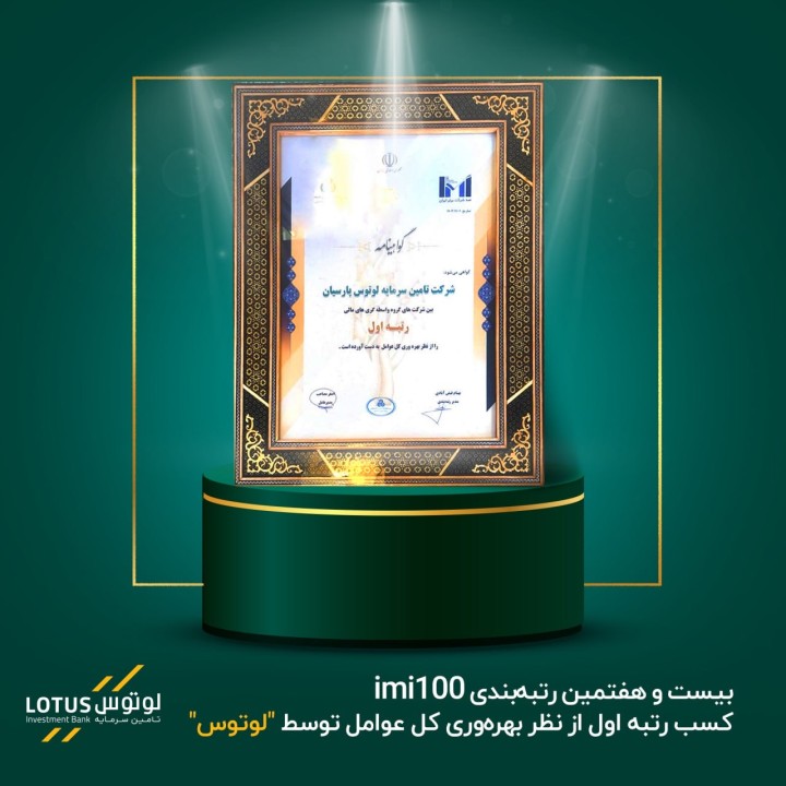 بر این اساس، تامین سرمایه لوتوس پارسیان در گروه واسطهگریهای مالی کشور، جایگاه دوم از نظر شاخص "میزان فروش"، جایگاه اول از نظر شاخص "بهره وری کل عوامل"، و در بین صد شرکت سوم جایگاه چهارم از نظر شاخص "بازده فروش" و جایگاه چهارم از نظر شاخص "بیشترین سودآوری" را بر اساس اطلاعات سال مالی 1402 کسب کرده است.