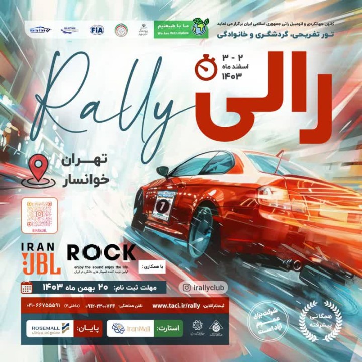 شرکت در این رویداد برای تمامی علاقهمندان آزاد بوده و علاقهمندان میتوانند برای گذراندن لحظاتی خاطرهانگیز در کنار خانواده و طبیعت تا 20 بهمن 1403 به وبسایت www.taci.ir/rally مراجعه و ثبت نام کنند و برای هماهنگی بیشتر نیز با شمارههای 0912230072 و 021-22755591-021 (داخلی 3) تماس بگیرند.