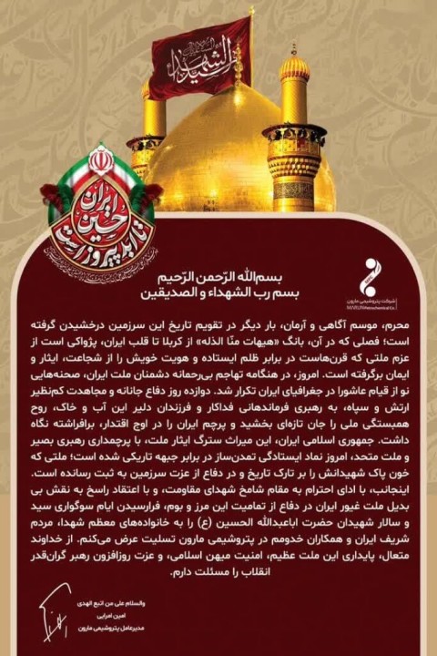 پیام امین امرائی مدیرعامل پتروشیمی مارون به مناسبت فرا رسیدن ماه محرم و‌تجلیل از ملت غیور ایران