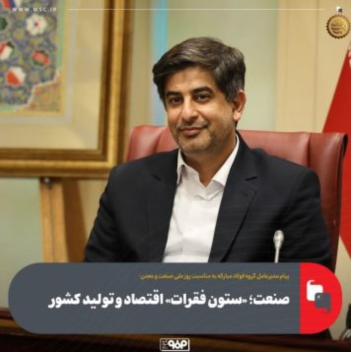 در پایان دهم تیرماه، روز ملی صنعت و معدن را گرامی داشته و برای همه فعالان حوزه صنایع معدنی و تلاشگران گروه فولاد مبارکه آرزوی موفقیت و سربلندی دارم.