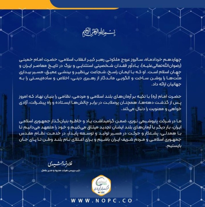 پیام دکترغلامرضا جمشیدی، مدیر عامل به مناسبت سالروز ارتحال ملکوتی بنیانگذار کبیر انقلاب اسلامی، امام خمینی (ره)