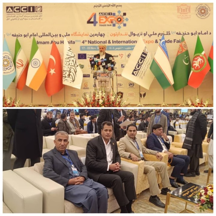 او افزود که افغانستان در نظر دارد در آینده از بندر چابهار به عنوان بزرگترین مسیر تجاری برای دستیابی به بازارهای جهانی استفاده کند. مراسم افتتاحیه چهارمین نمایشگاه بینالمللی ابوحنیفه، با حضور مقامات بلندپایه حکومتی، سفرا و نمایندگان کشورهای منطقه و جهان و نیز نمایندگان نهادهای بینالمللی، امروز دوشنبه، 26 آبان 1404، از سوی اتاق تجارت و سرمایهگذاری افغانستان در مرکز نمایشگاههای بینالمللی کابل برگزار شد.